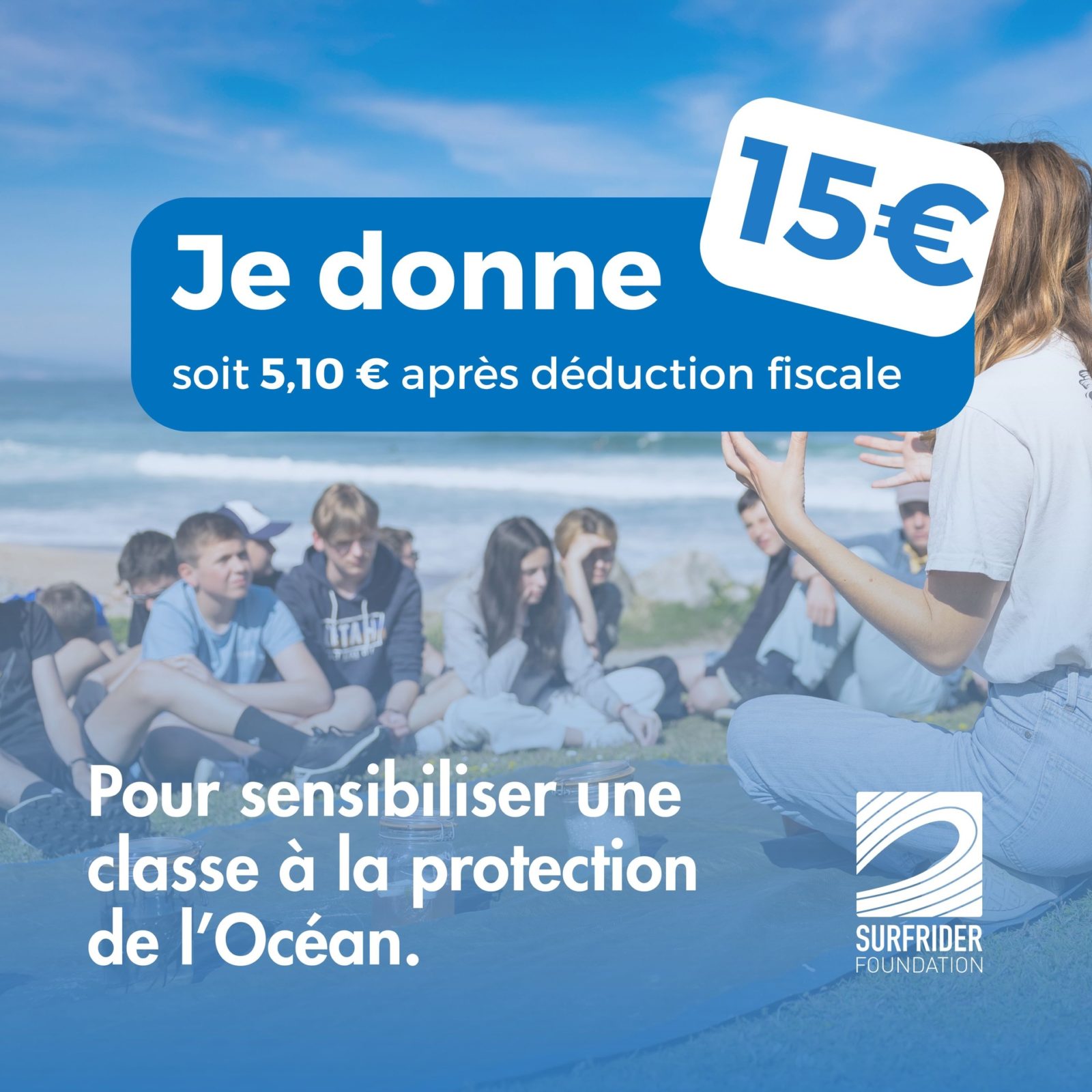 Avec un don de 15 €, soit 5,10 € après déduction fiscale, vous contribuez à éveiller les consciences et encourager le passage à l’action pour un Océan préservé.