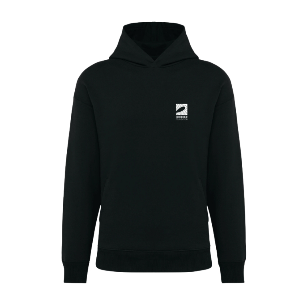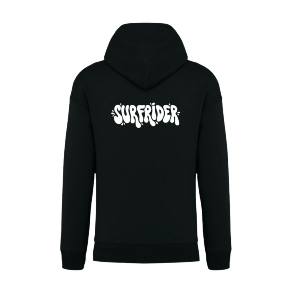 With its clean design and rebellious spirit, this black hoodie features the Surfrider name in a funky typography with stylized splatters, perfect for showcasing an urban and stylish commitment. A nod to the Surfrider spirit: positive and resolutely modern.