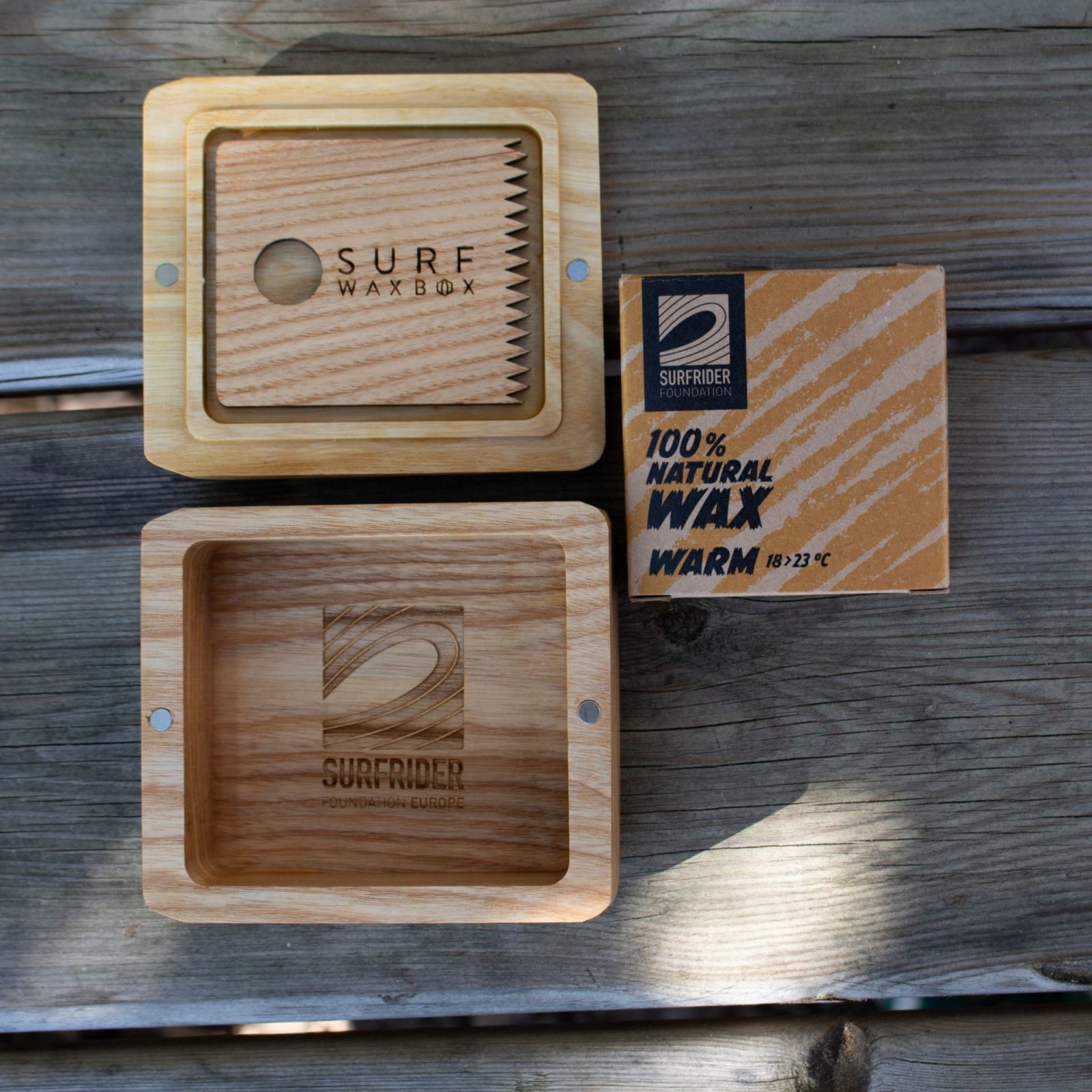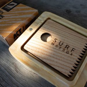 Kit Wax et Waxbox en bois gravé avec peigne “Surfrider”