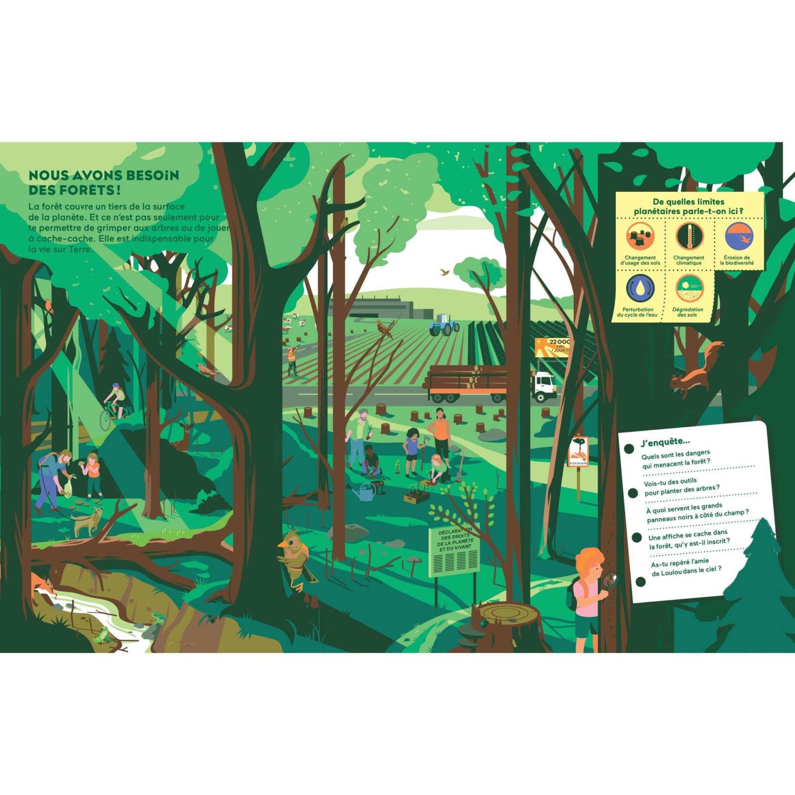 Tu t’es peut-être un jour demandé à partir de combien de forêts coupées les animaux sont en danger ? Ou combien de produits chimiques la planète peut supporter ? Une équipe internationale de chercheurs et de chercheuses a répondu à toutes ces questions ! Avec Camille et Loulou, toi aussi, mène l’enquête sur les ressources et les limites de la planète. Et découvre tout ce que tu peux faire pour la préserver.